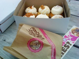 If anybody knows me, they know I’d splurge on cupcakes. My boyfriend was awesome enough to buy 6! We chose Caramel Apple Pie, Chocolate Coconut, Skor, Caramel Chew, Vanilla & Sprinkles, and Pumpkin Spice. It was pretty adorable that the girl in the truck was the girl who’s face was painted on the truck. She was the brand! We ate some of the cupcakes on the spot, but they provided for delicious desert for later!