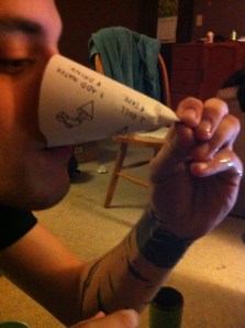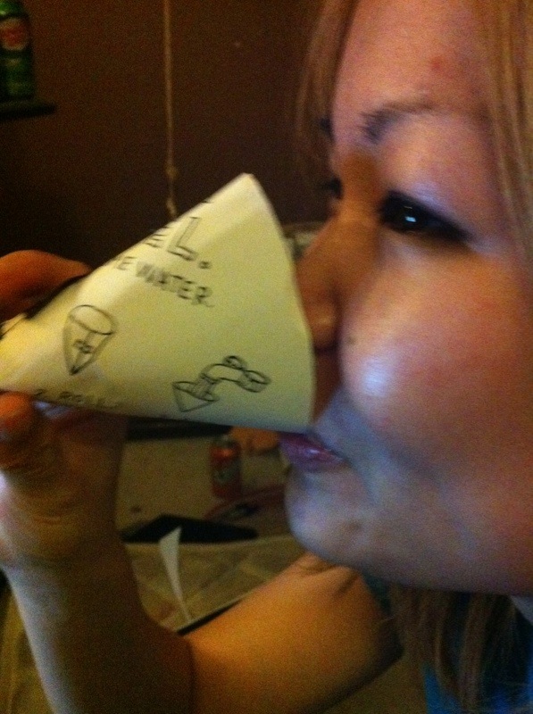 This journal wrecking is also much more fun with another person. So Nash is probably going to be doing a bunch of it with me. Here is us attempting to drink from a paper cup: