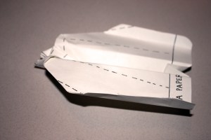 So, I decided to do the paper airplane folding one. I decided not to go with the generic paper airplane that they give you instructions to fold.