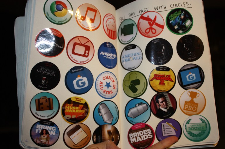 Then I filled a page with circles. I realized I have a ton of stickers I had earned from entertainment social network site GetGlue, which happen to be circle. I filled the page with them.