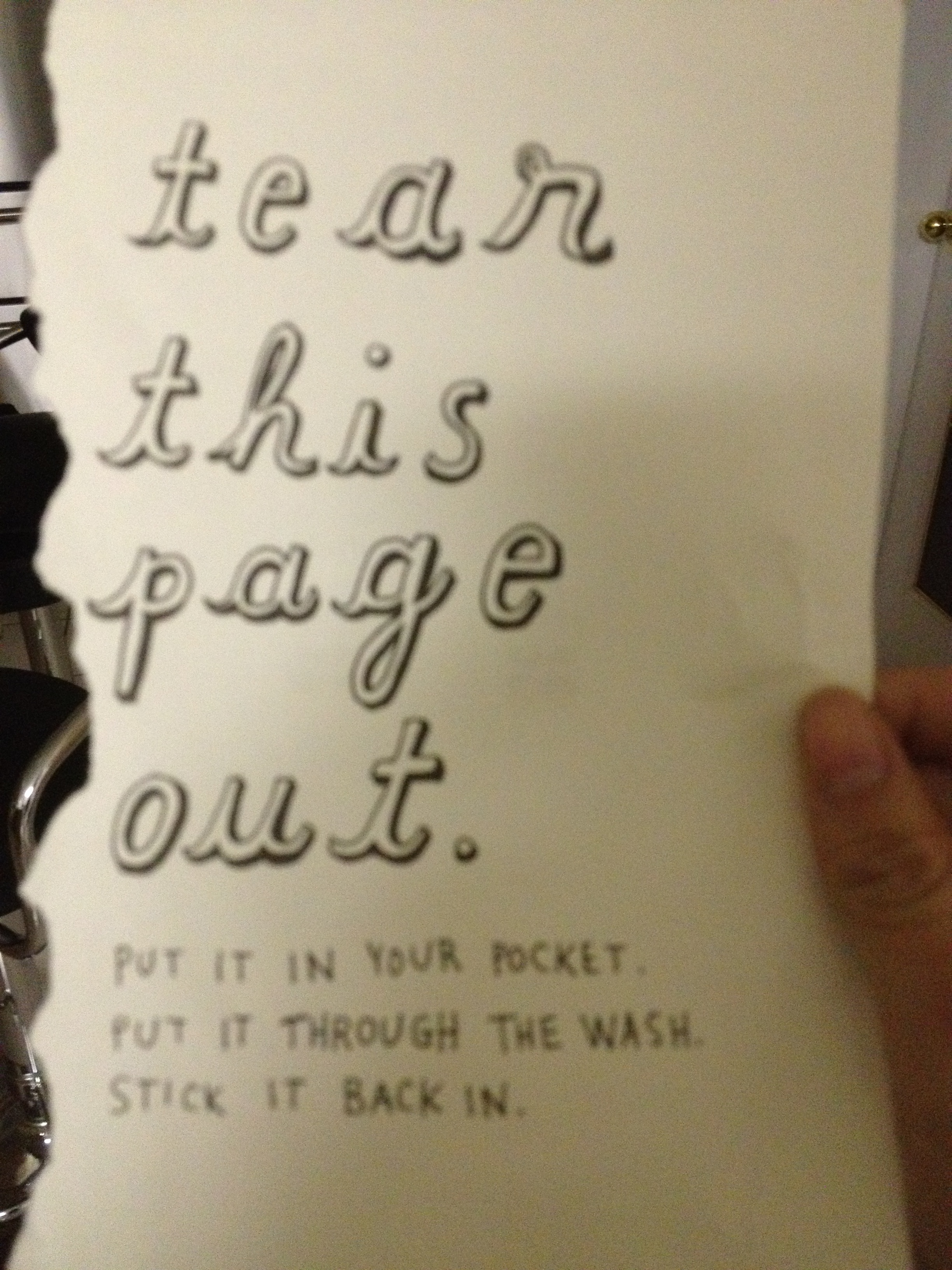 That’s the page after it went through the dryer. I don’t have the page anymore, Teddy ate it. I guess he’s helping wreck this journal too now.