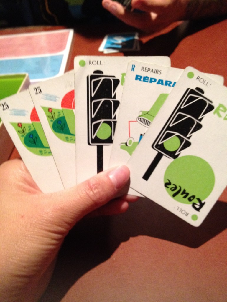 After the Starcraft game we needed something a bit more brainless. Nash taught me how to play Mille Bornes.