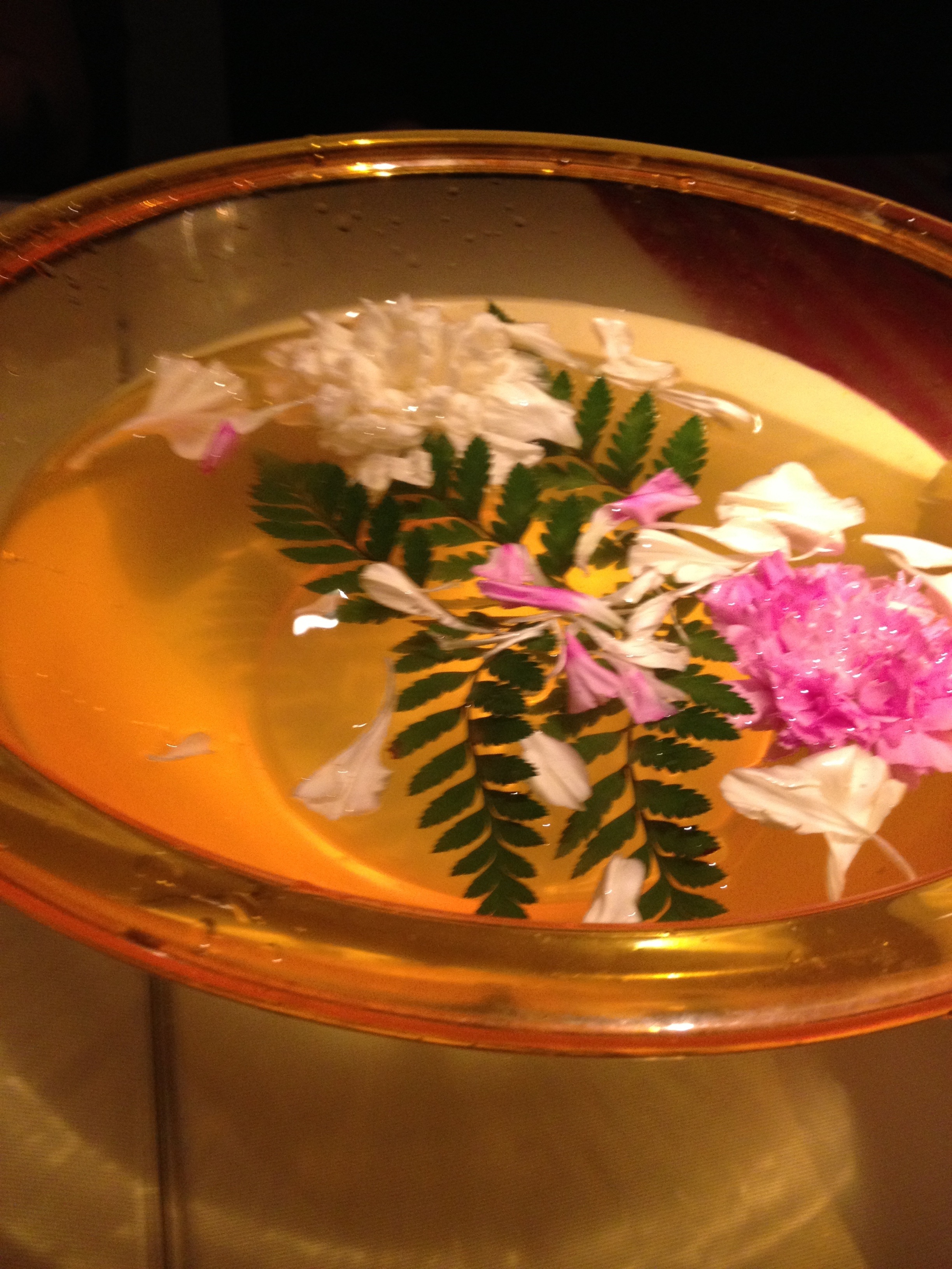 Since we had all eaten with our hands, we were given warm water with lotus flowers to wash them in when we were finished with our meal.
