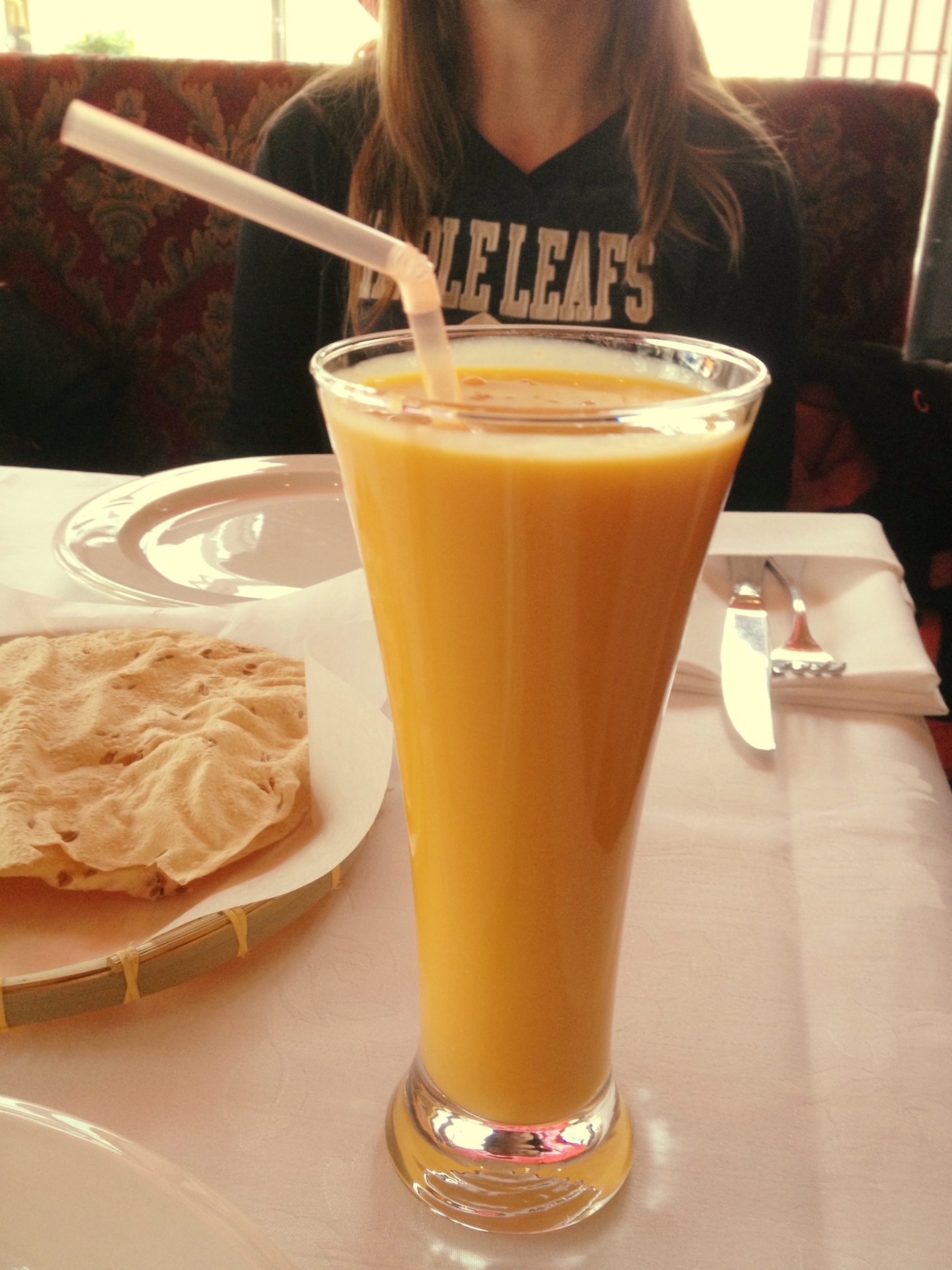 To drink I had a Mango Lassi, a kind of mango shake made out of yogurt. It was great for cleansing the palette and cutting the heat in between the different dishes.