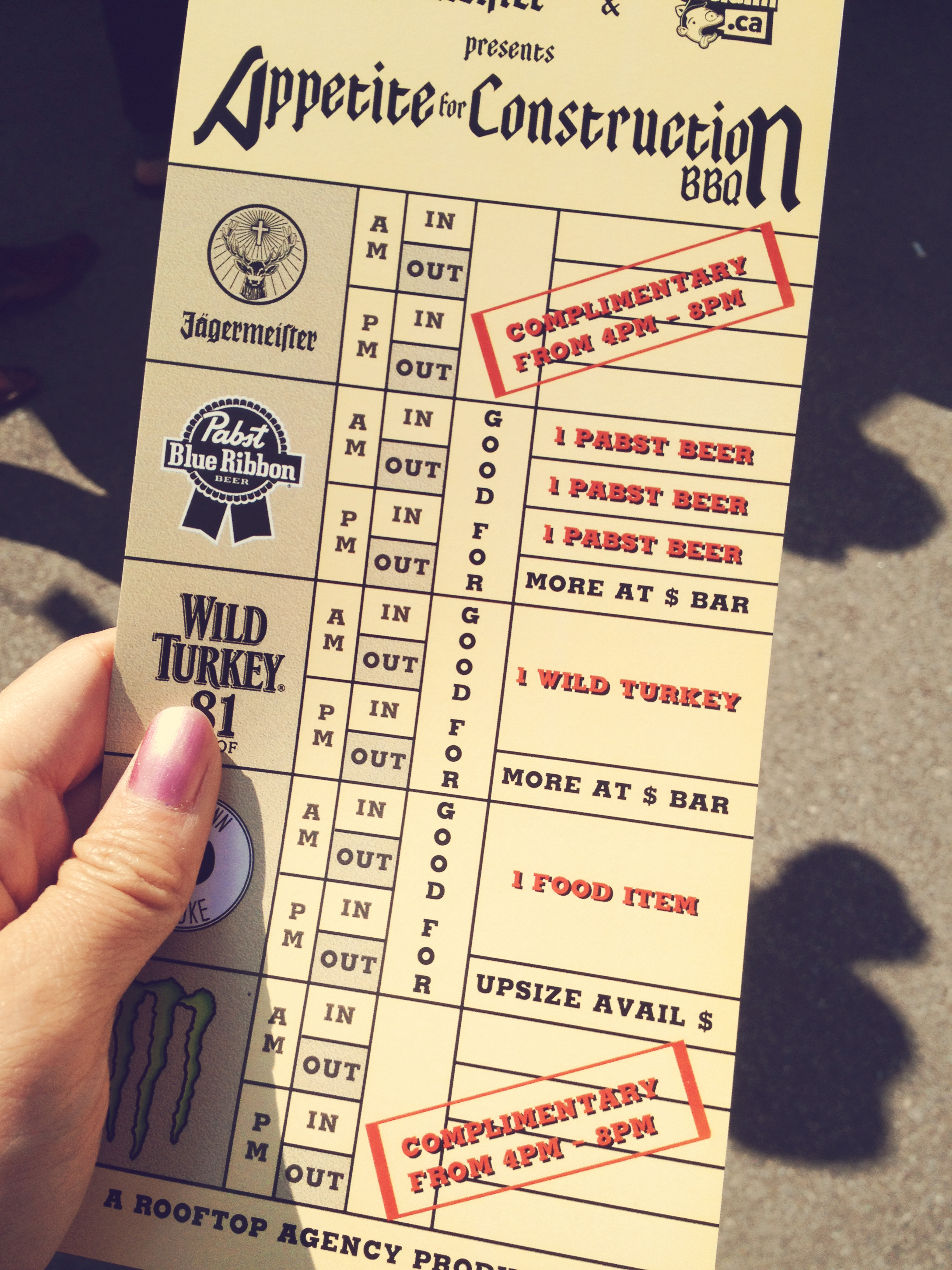 Everybody in the Toronto music industry was around so it was nice to catch up and relax amidst a hectic week. To drink, there was free Jager shots, Monster energy drinks and Pabst. Attendees were given punch cards for food and drink.