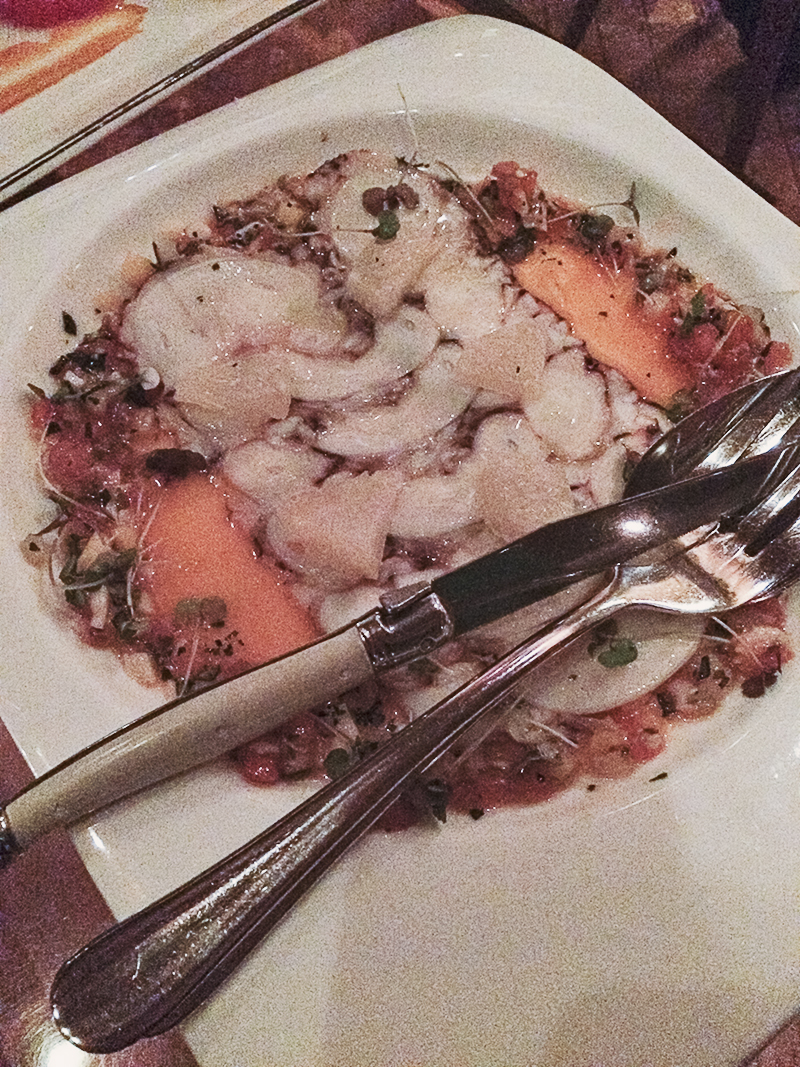 Next was the Cold Pressed Octopus ($17). The octopus was served in thin slices with a vinaigrette. While good, we found it the least memorable dish of the night.