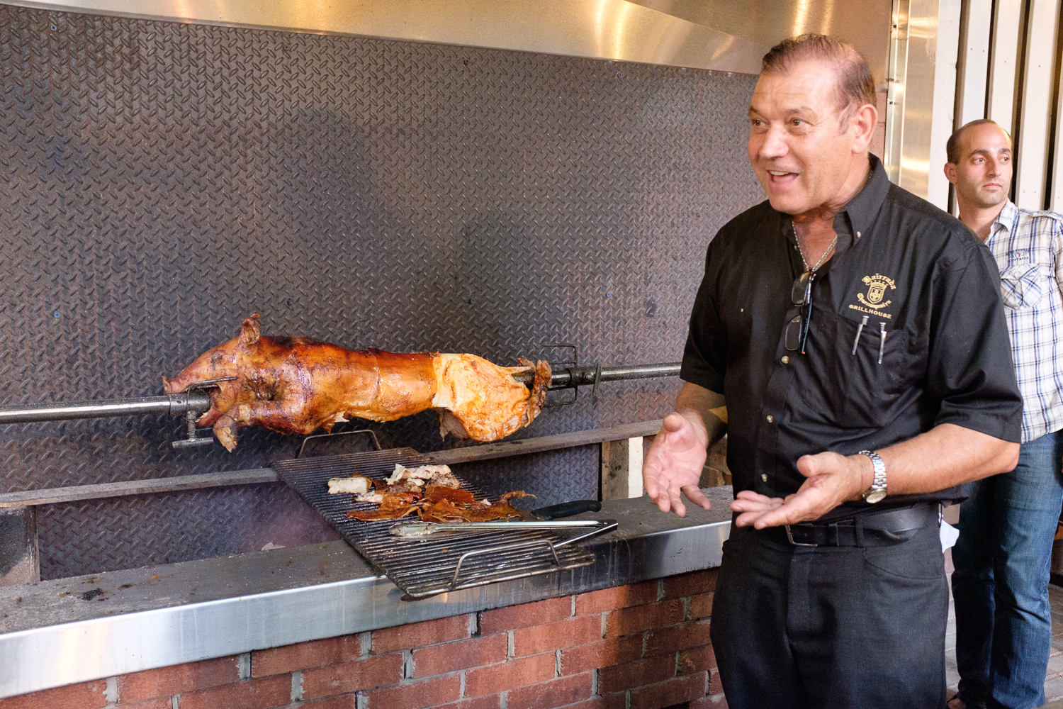 As we waited for everyone to arrive, we were treated to sangria and roast suckling pig that you could see spinning out back. The crispy skin was the best part. Little did we know, there was plenty to eat throughout the night.
