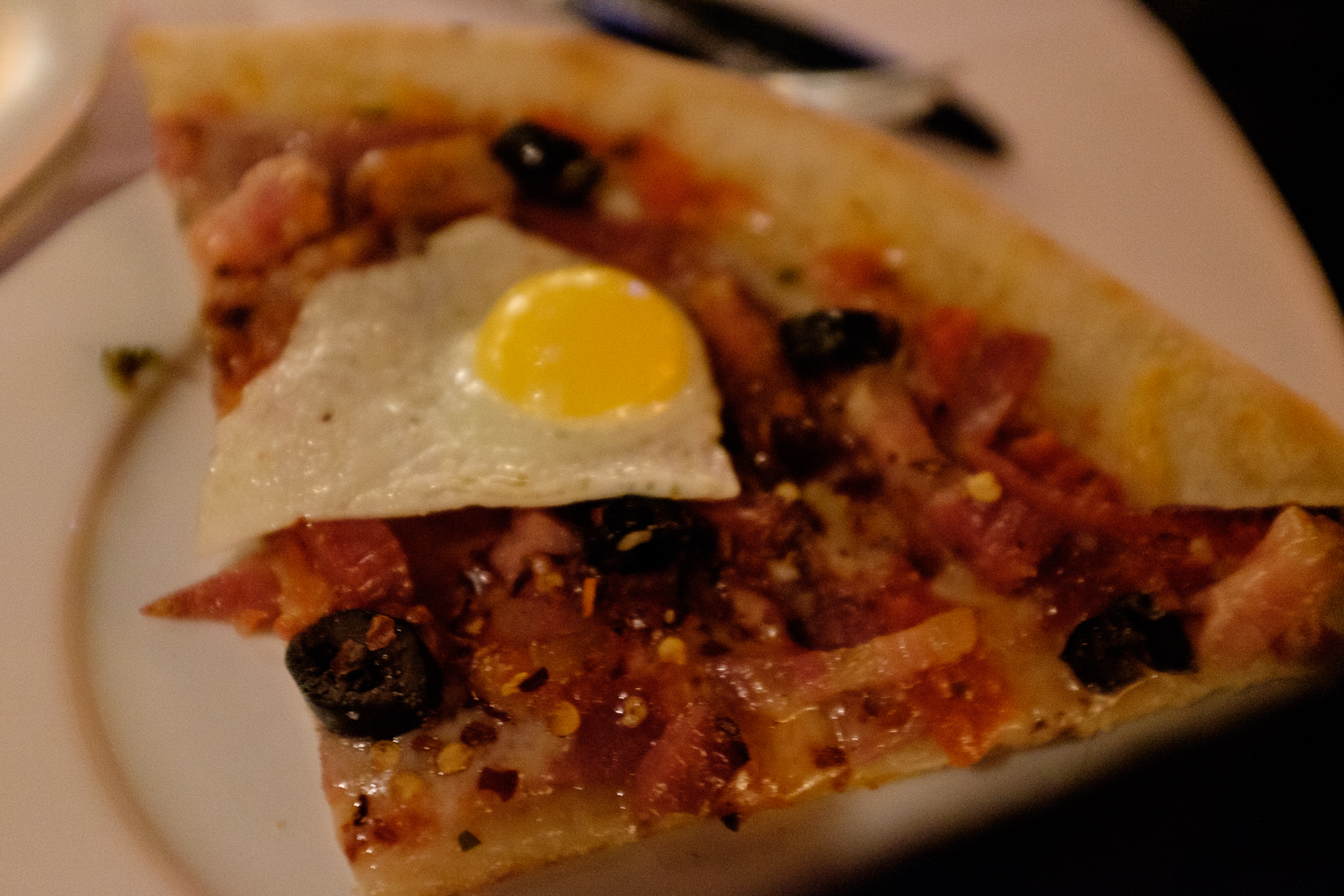 Next was the Hangover Cure which had soppresata, tomato, olives, double smoked bacon, mozzarella, grana padano, chillies and topped with a fried egg on each piece. It was truly a hangover cure!