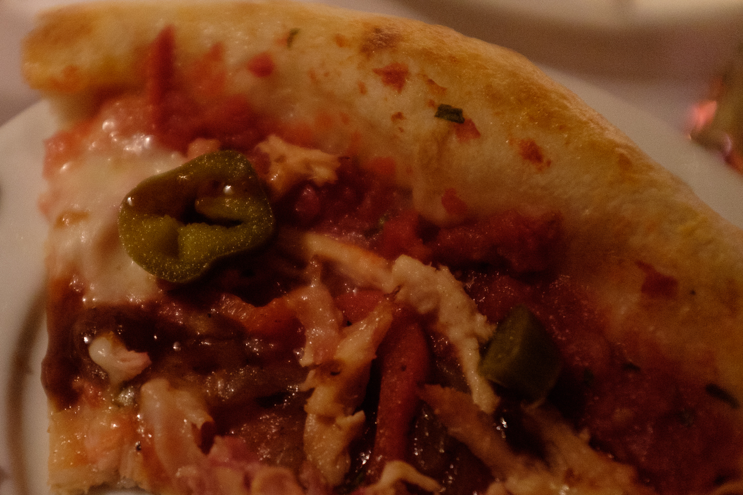 Excuse the horrible photo but this was a slice of Smoked Chicken pizza before I got impatient and ate it before taking a photo! It was a delicious combination of chicken, chipotle bbq sauce, and peppers, some of which were a spicey!