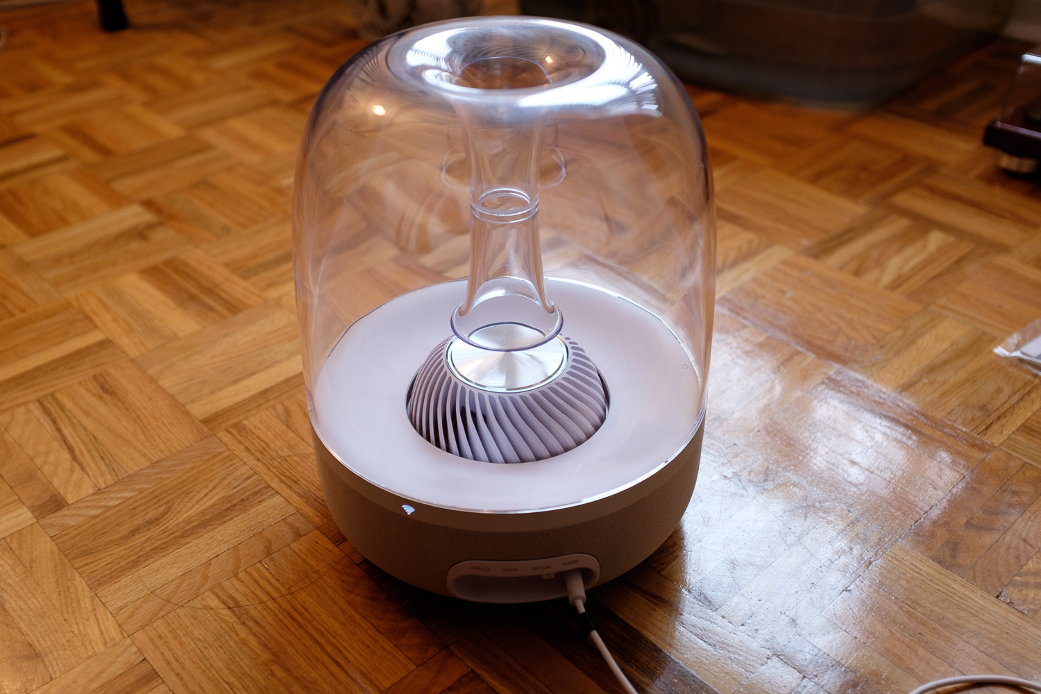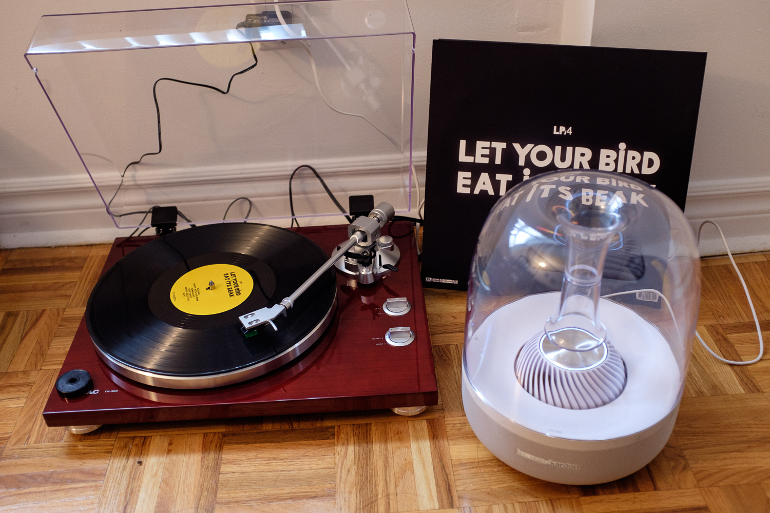 I also bought a Harmon Kardon Aura speaker. It has both Bluetooth and Airplay wireless capabilities. I can also plug it into my new record player. It is perfect for me because I don’t live in a big apartment so this is super simple and the sound fills the entire room.