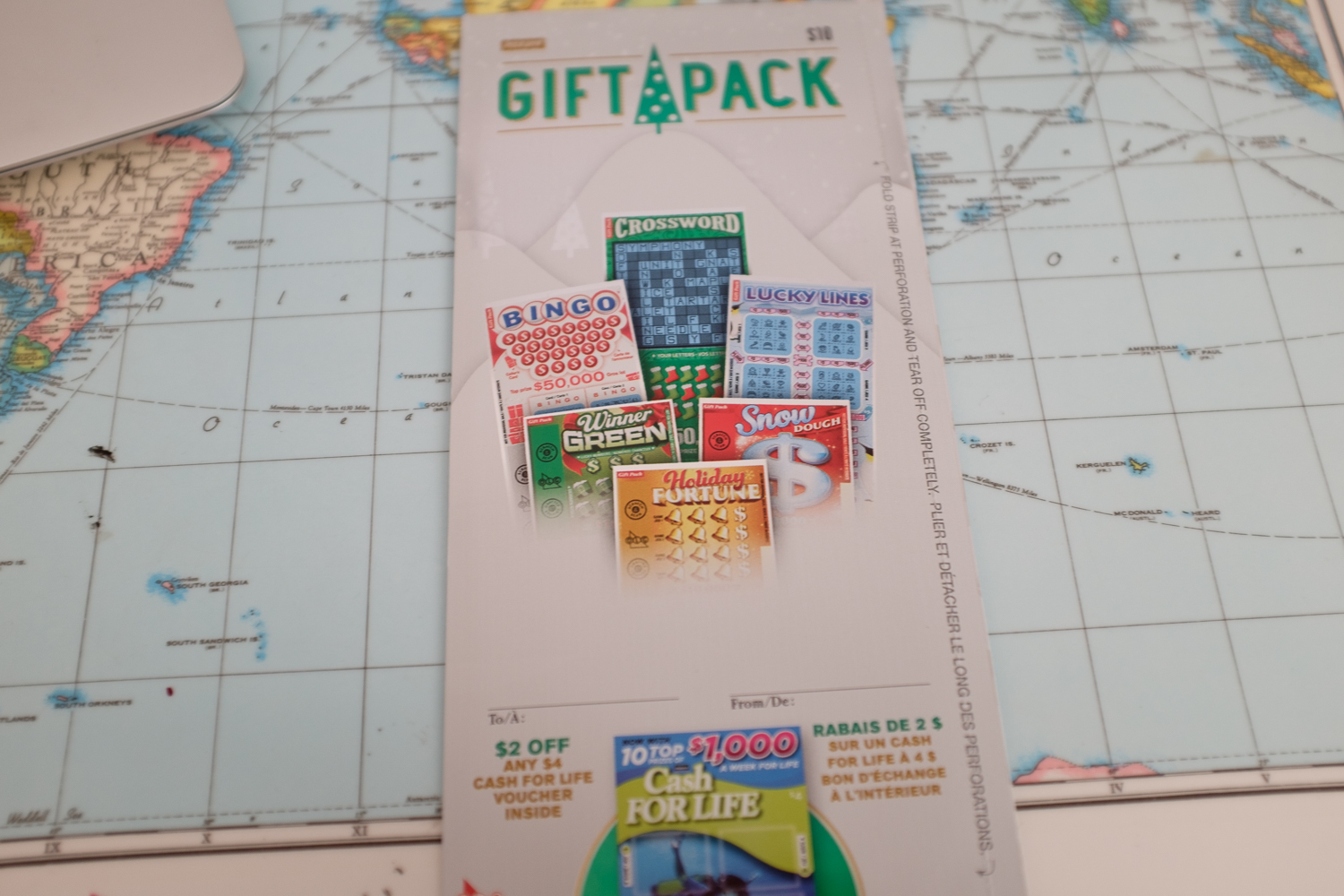 Around the holidays, they always have gift packs of holiday scratch cards. I don’t really buy scratch cards during the year, but these packs are fun because they have a bunch of different ones. Nash and I picked up our own packs. We won nothing. Absolutely nothing.