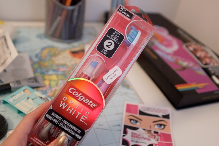 Honestly, I was kind of disappointed in May’s Topbox. Two of the samples were super tiny and the Colgate Optic White toothbrush thing they threw in as an extra expires in June.