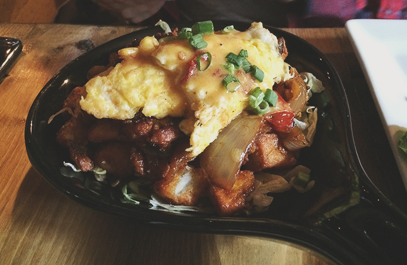 I ordered the Fried Chicken Wafflewich (pictured above). The sandwich had buttermilk fried chicken, an apple coleslaw, bacon, mayo and a side of maple syrup which I happily drenched everything in. It was served with a side of “fries” which were really more like tater tots, but crunch and delicious. Everything in the wafflewich paired nicely together but I wish it was slightly bigger. Considering it was $4.95 I couldn’t really complain.