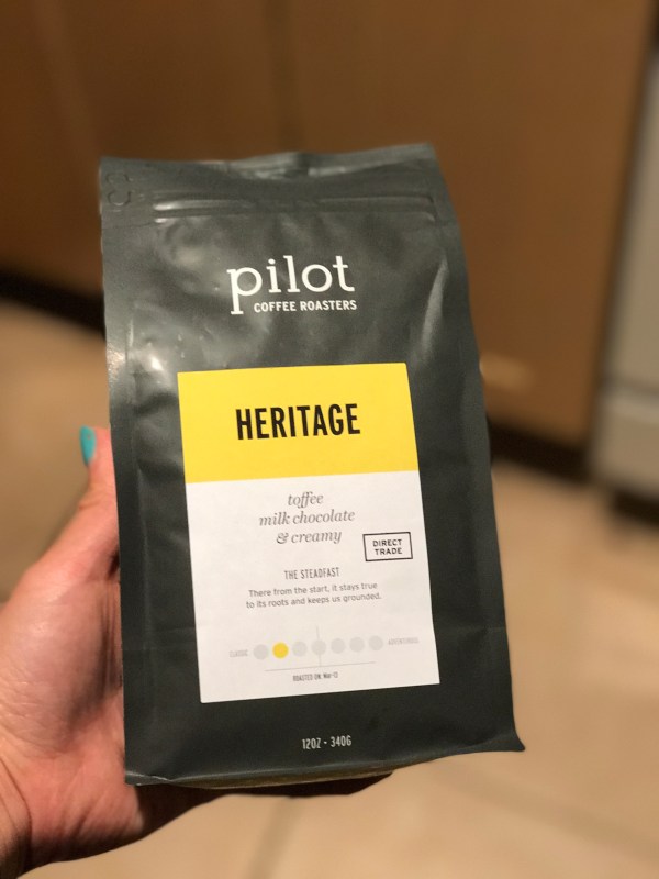 In Toronto, I’m blessed with a lot of local indie coffee shops that sell local brews. I picked up this Heritage blend by Pilot Coffee Roasters.
